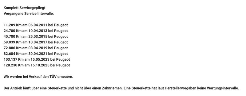 Sehr gepflegter Peugeot 207 Ausstattungspaket: Urban Move aus 1 Vorbesitz mit einer schönen Ausstattung und 95 Ps (4 Zylinder). Alle Service Wartungen wurden lückenlos direkt bei Peugeot durchgeführt bis 128.230 Km am 15.10.2025. (EINE AUSFÜHRLICHE HISTORIE ALLER SERVICE INTERVALLE FINDEN SIE UNTEN IN DER MITTE). Wir werden bei Verkauf den TÜV erneuern. Bereift ist der Wagen 8-Fach bereift (Sommer/Winter). Der Antrieb läuft über eine Steuerkette und nicht über einen Zahnriemen. Eine Steuerkette hat laut Herstellervorgaben keine Wartungsintervalle.